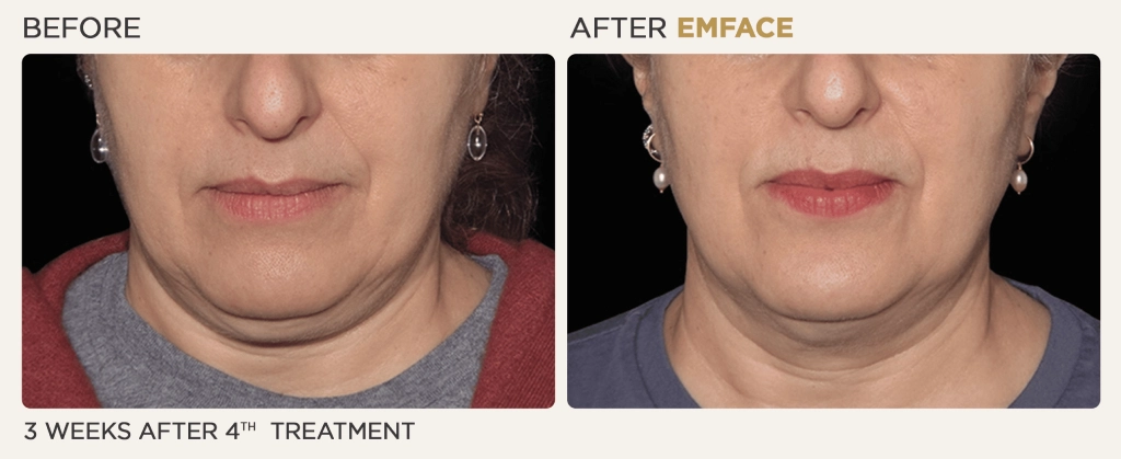 The EMface before and after images show why everyone is so excited about this new facial cosmetic procedure technology. EMface sessions provide instant facelift without needles, scalpels, or surgery. Each patient achieves dramatic improvements to their appearance, including fewer wrinkles, better facial tone and symmetry, and a firmer and tauter look making them appear much younger. As with any cosmetic treatment, results will vary.*